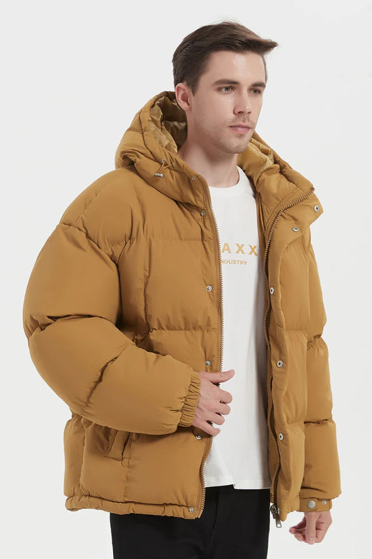 Heren Colorblock Pufferjas met Capuchon wit/zwart