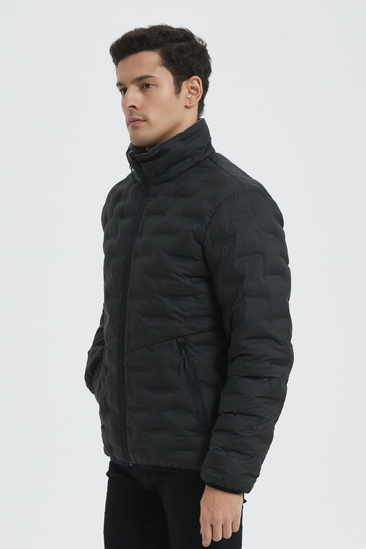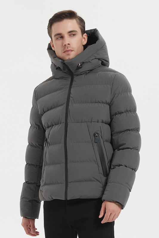 Heren Colorblock Pufferjas met Capuchon zwart/grijs