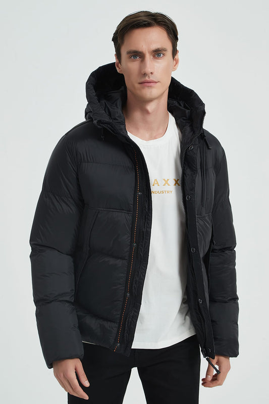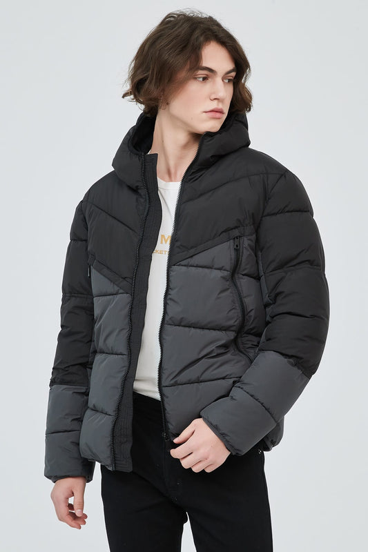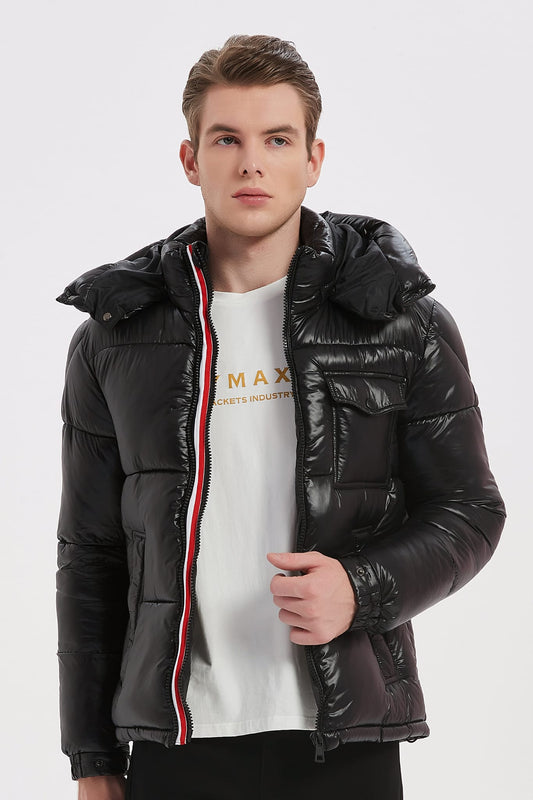 Heren Pufferjas met Capuchon en Gespsluiting zwart