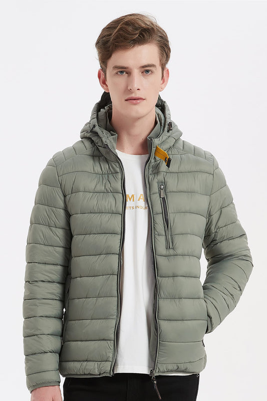 Heren Pufferjas met Capuchon en Gespsluiting legergroen