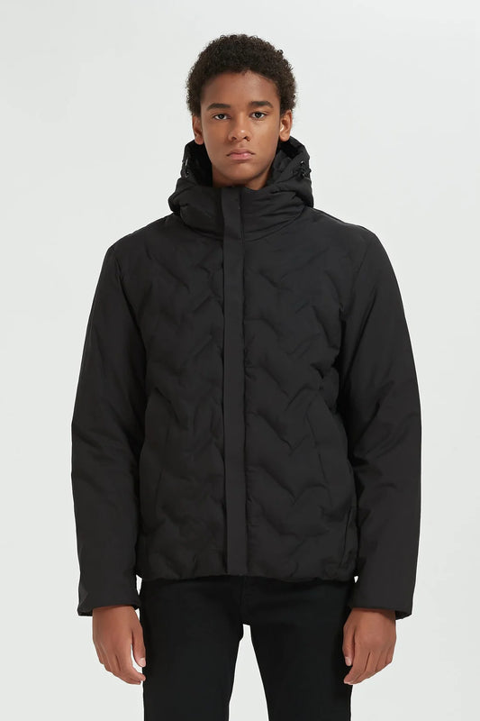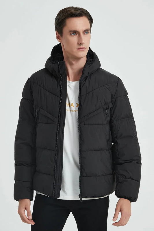 Heren Gewatteerde Pufferjas met Capuchon zwart