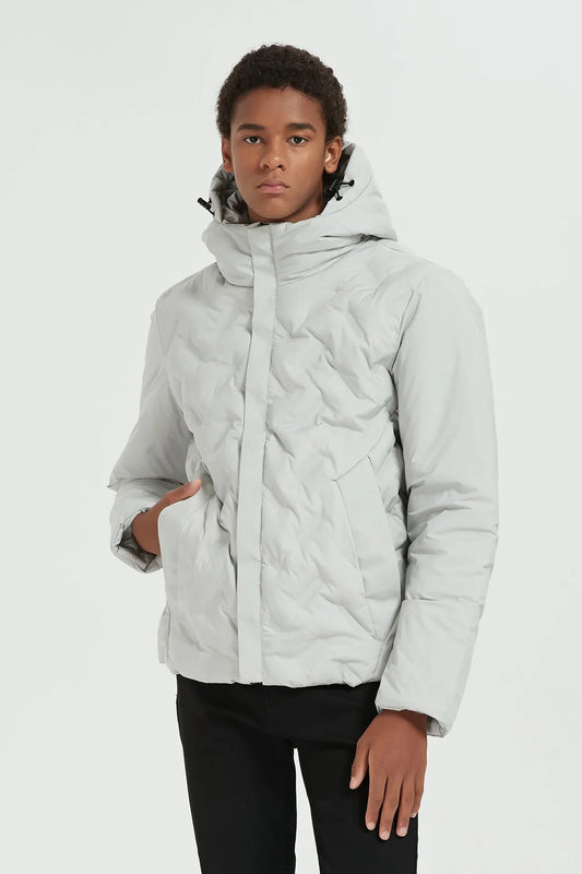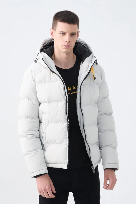 Heren Gewatteerde Pufferjas met Capuchon lichtgrijs