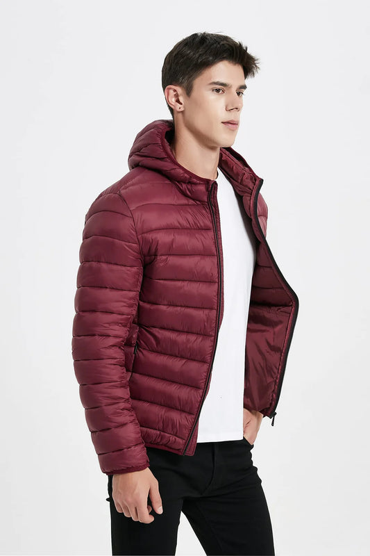 Heren Lichtgewicht Pufferjas met Capuchon bordeaux
