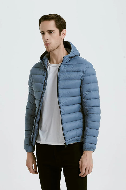Heren Lichtgewicht Pufferjas met Capuchon blauw