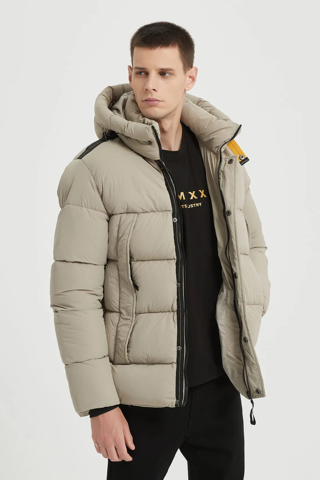 Heren Gewatteerde Pufferjas met Capuchon beige