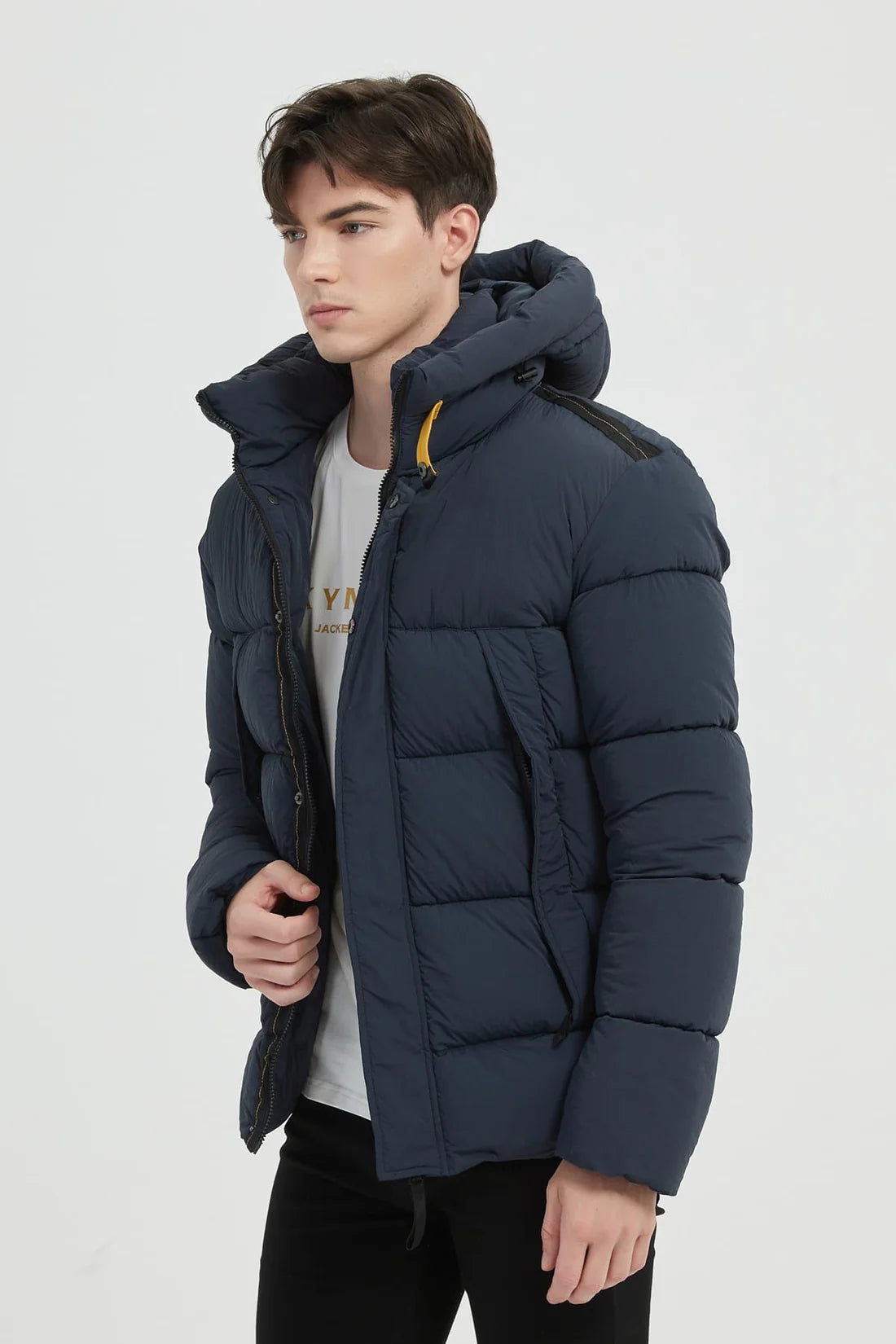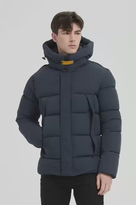 Heren Gewatteerde Pufferjas met Capuchon donkerblauw