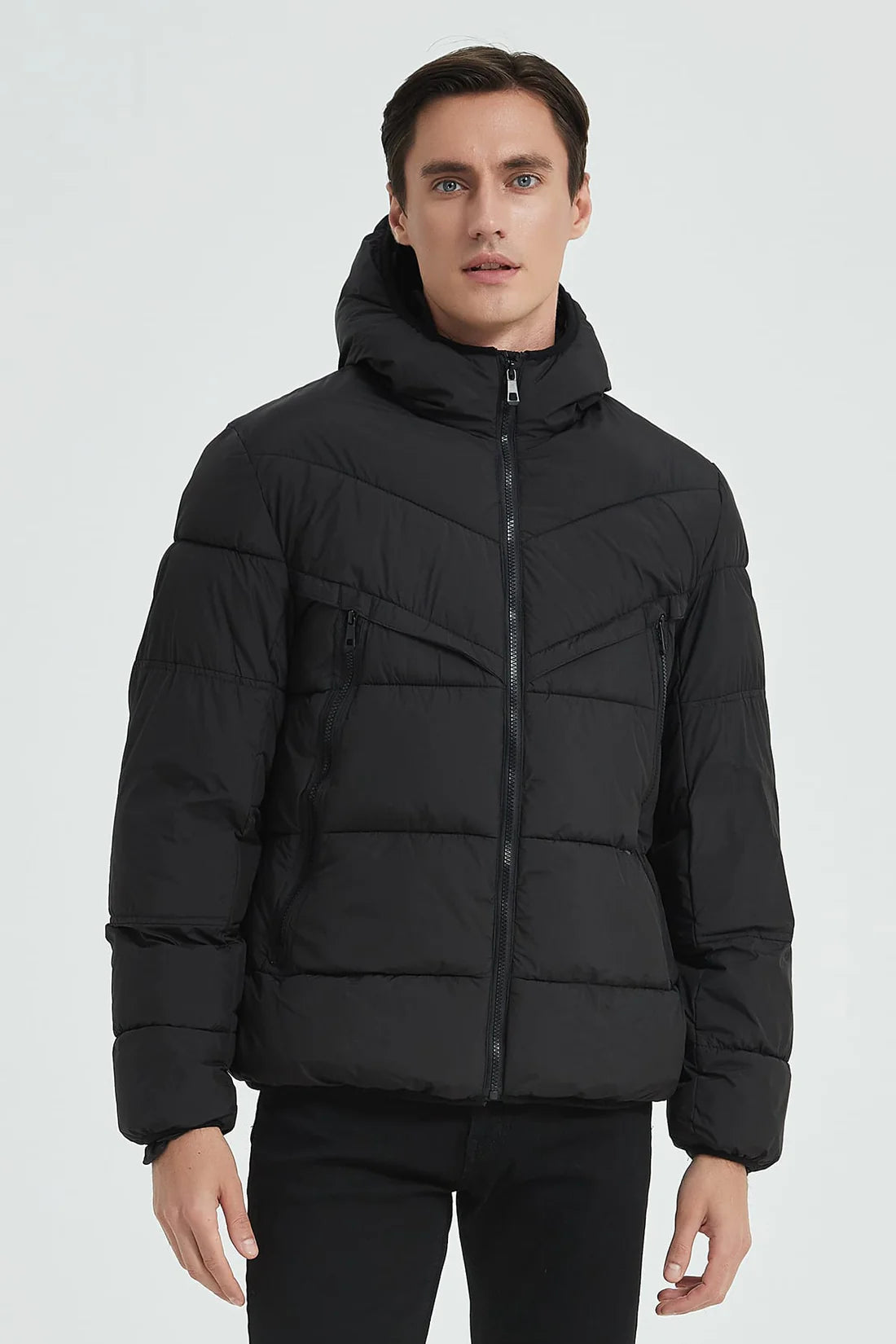 Heren Gewatteerde Pufferjas met Capuchon zwart