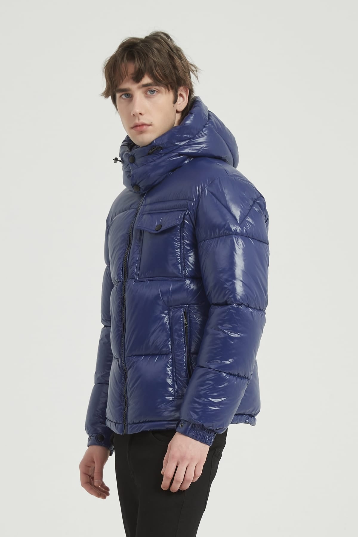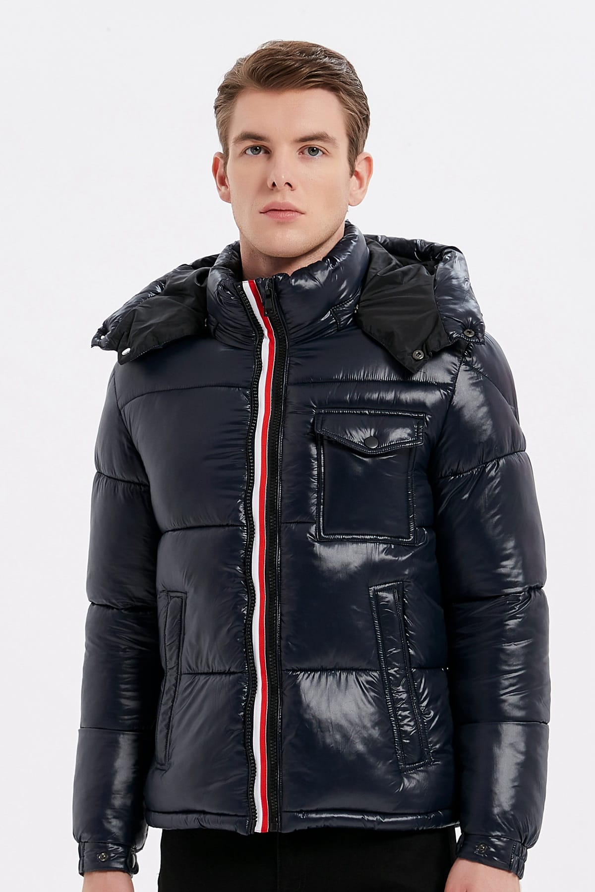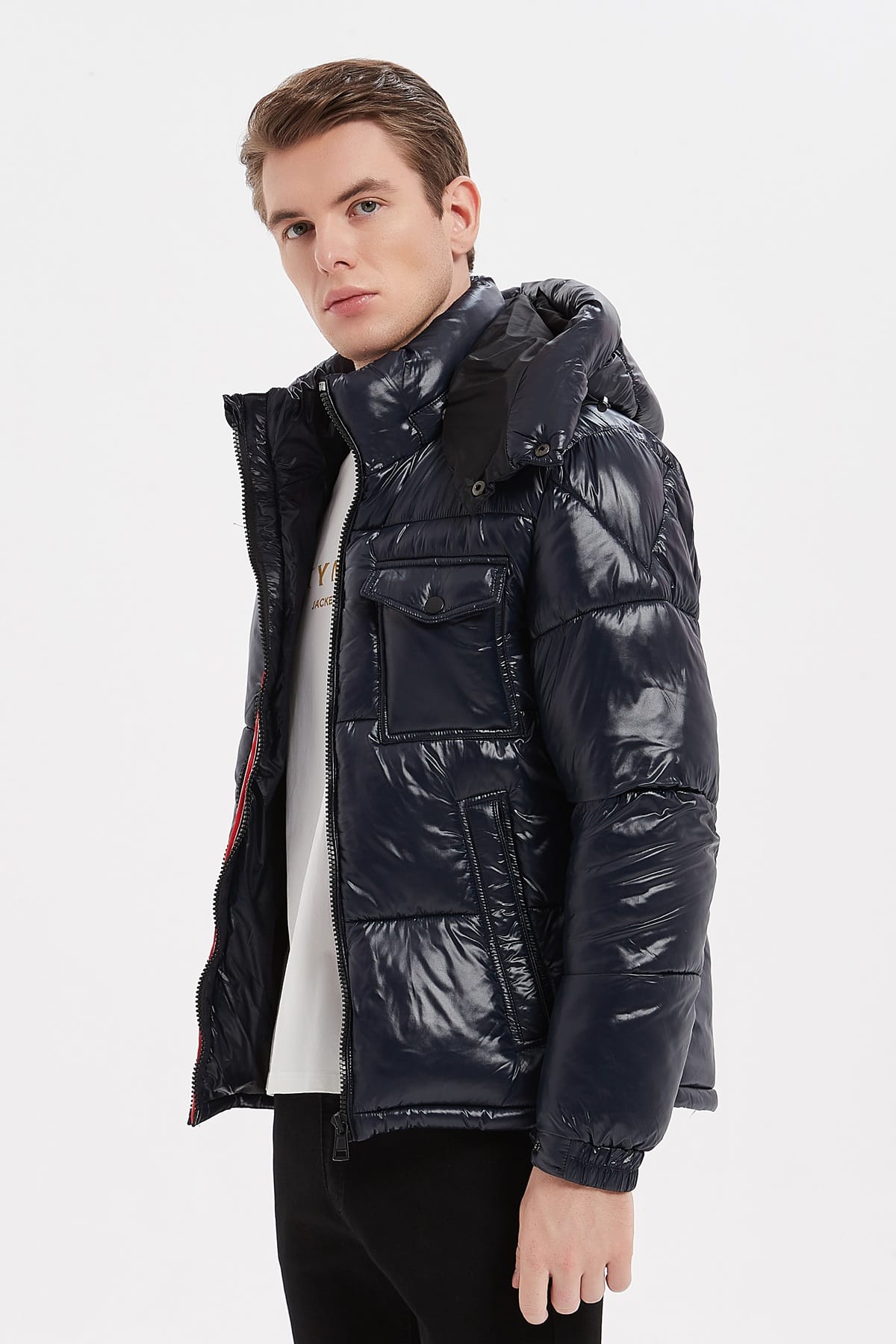 Maak een statement met deze glanzende pufferjas. De shiny afwerking geeft een moderne uitstraling, terwijl de dikke vulling je warm houdt, zelfs tijdens de koudste dagen. Met een afneembare capuchon, borstzak en veilige zakken met rits combineert dit jack functionaliteit met een stoere streetstyle look.