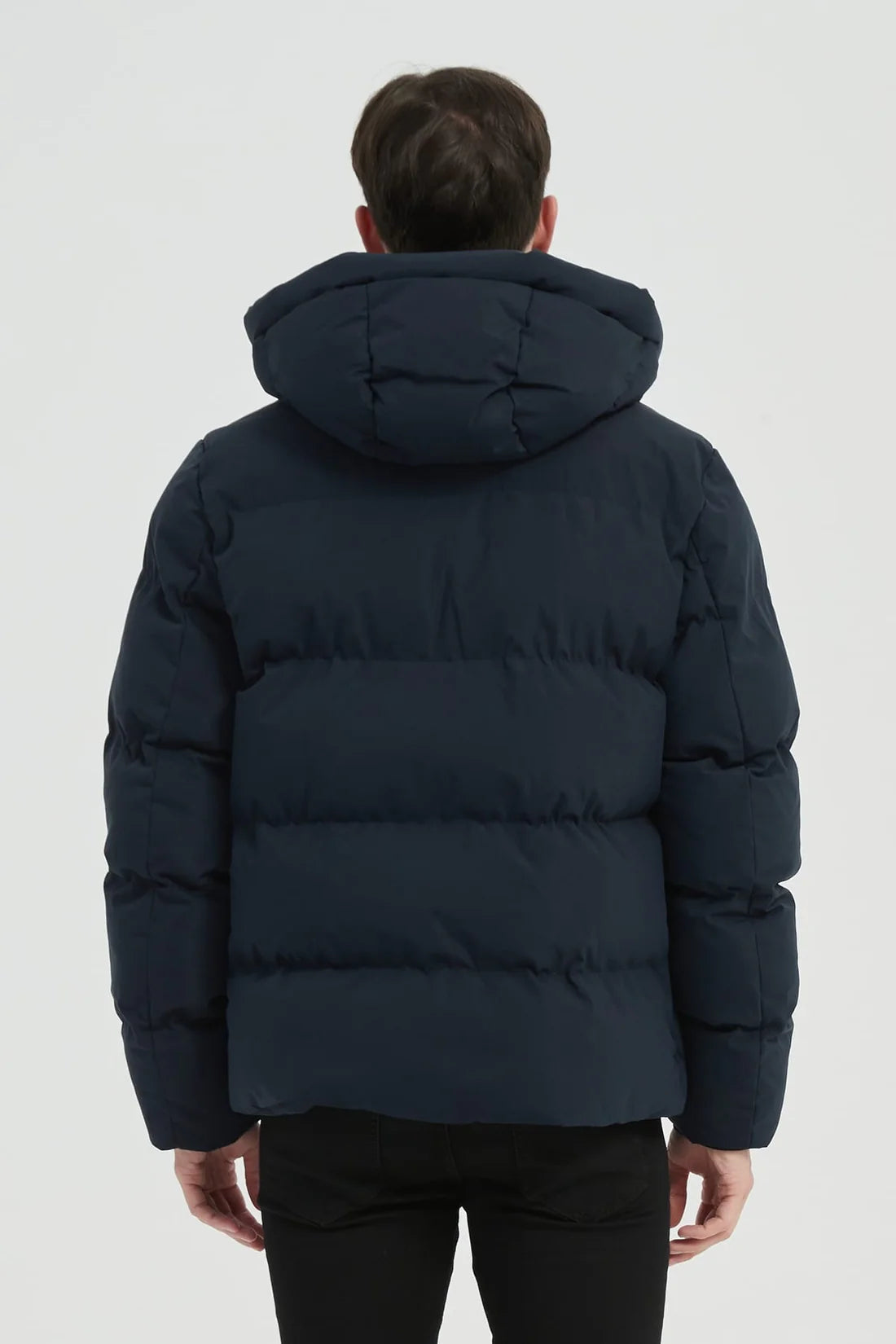 Heren Klassieke Pufferjas met Capuchon donkerblauw