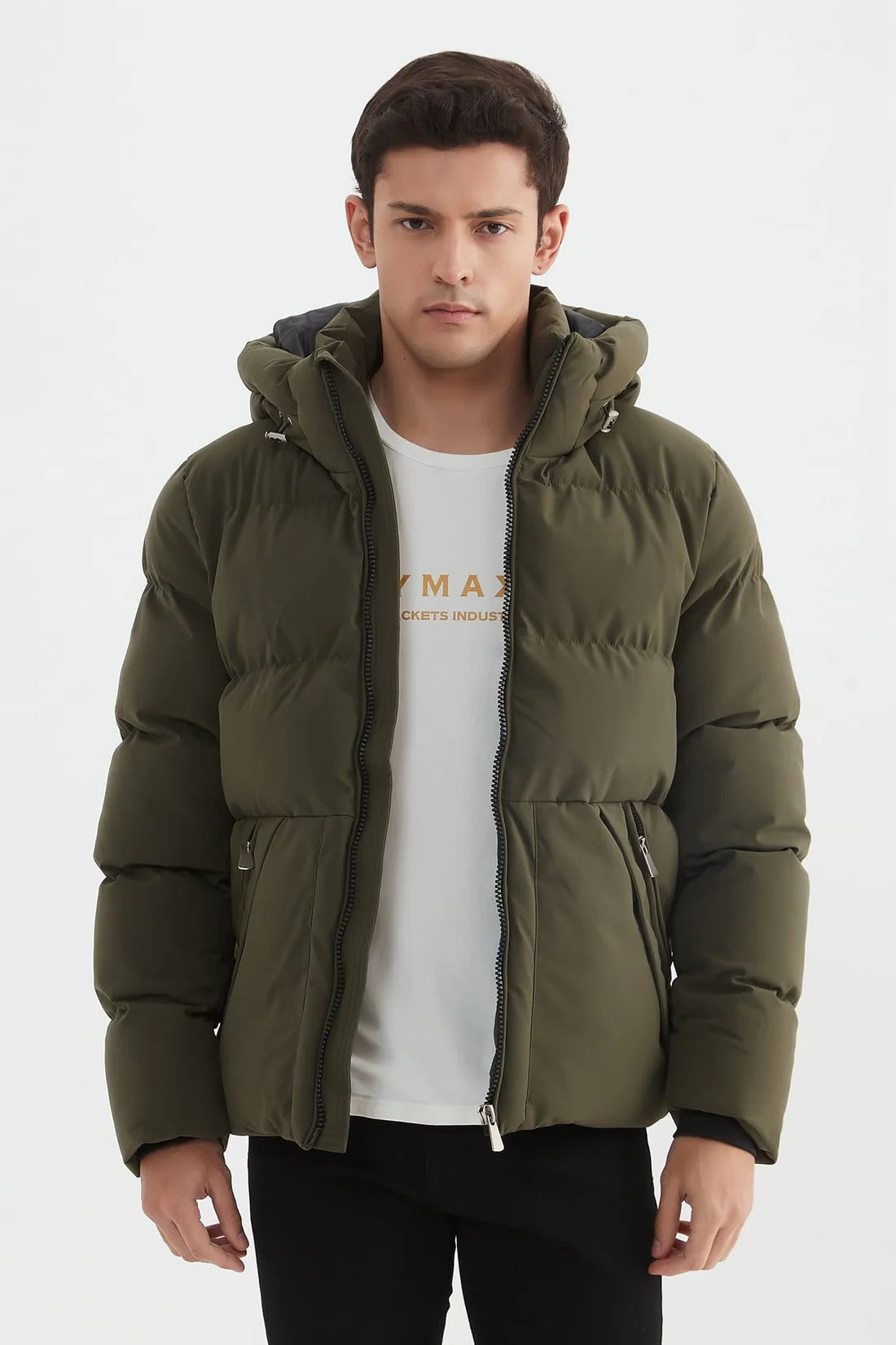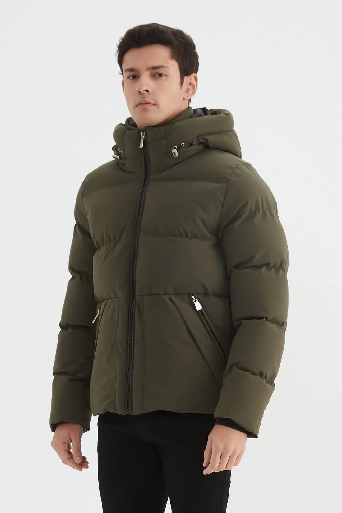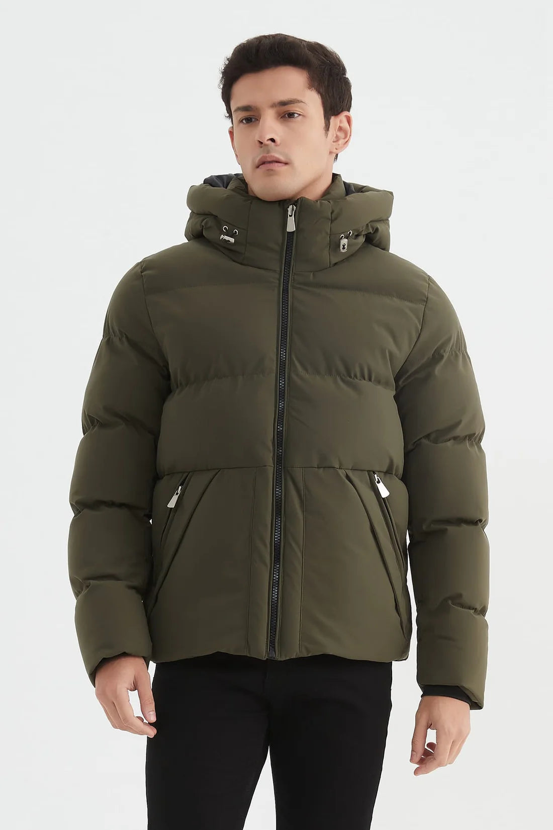 Heren Klassieke Pufferjas met Capuchon legergroen