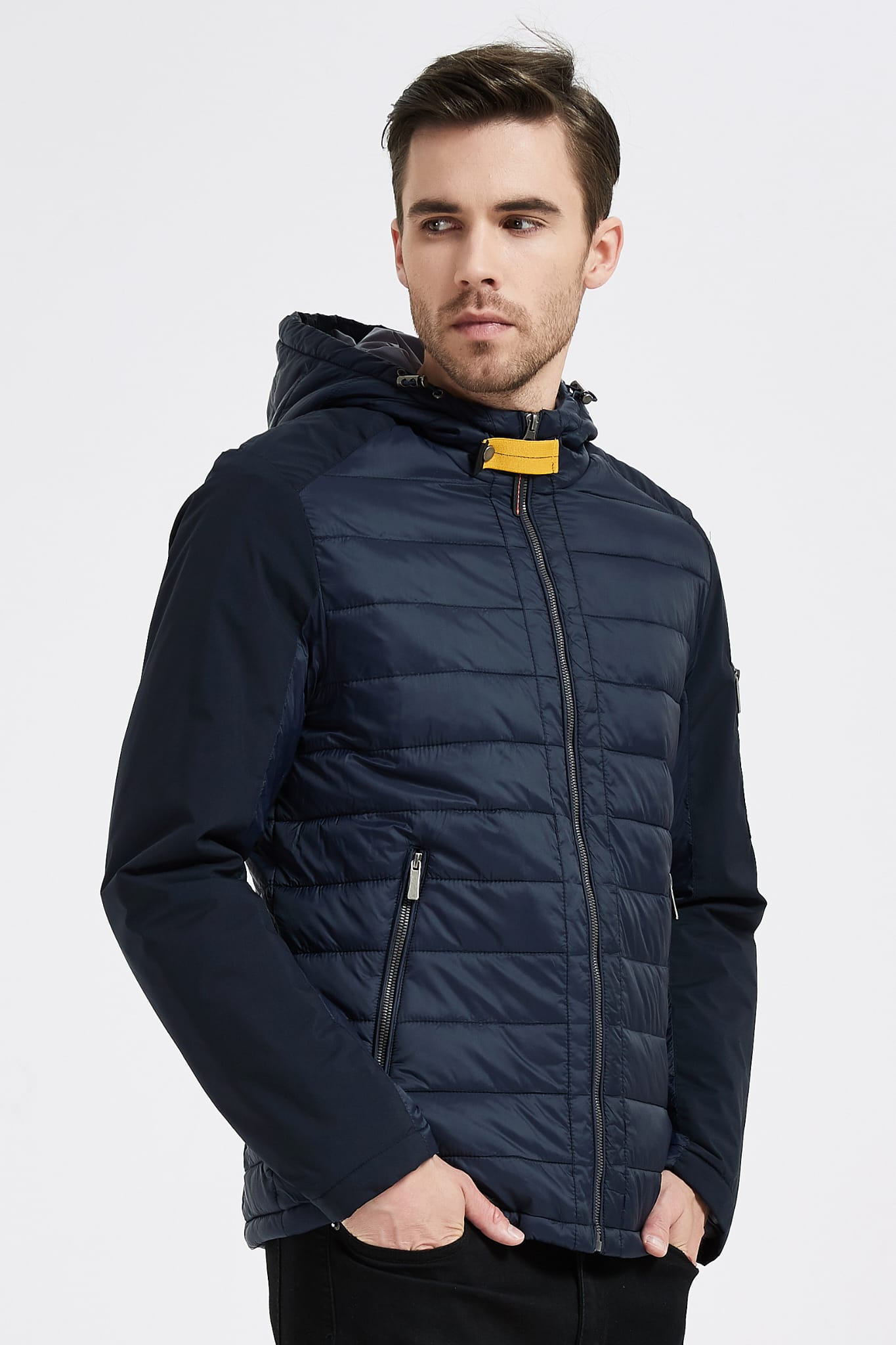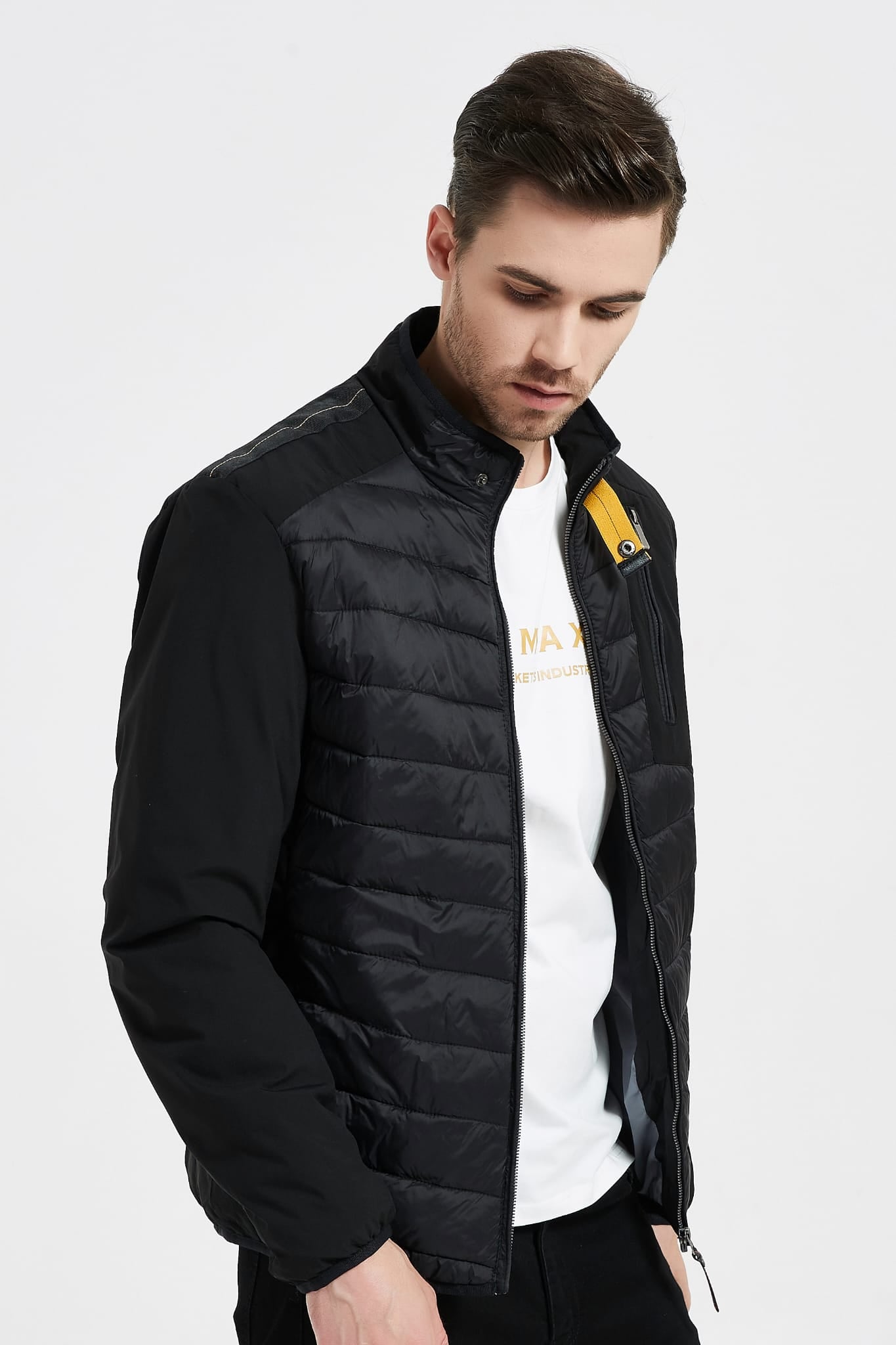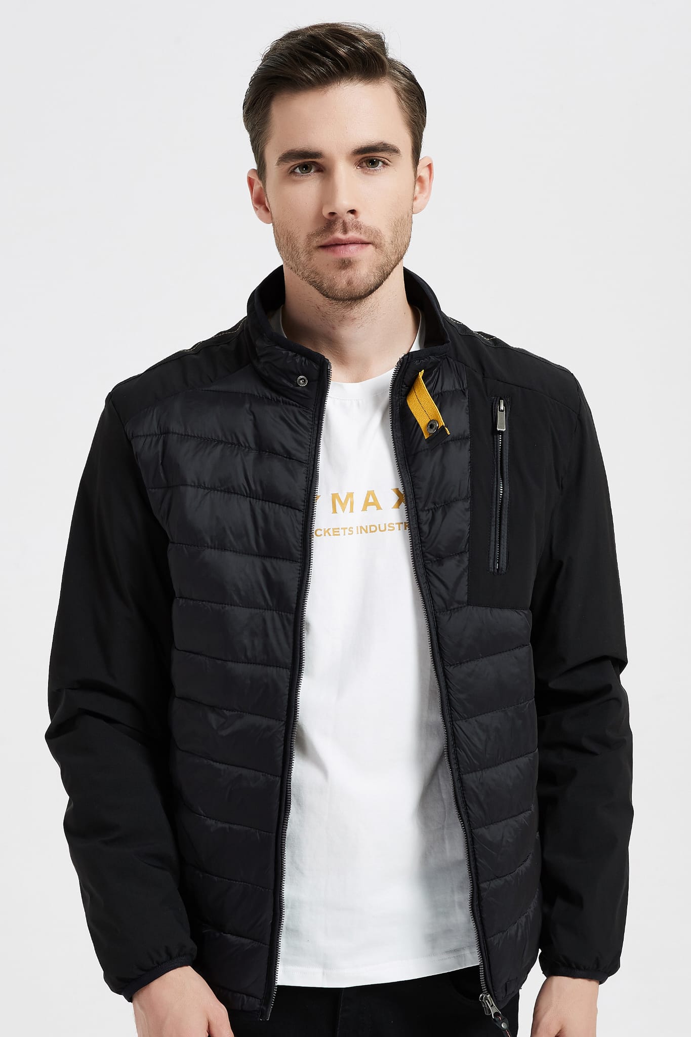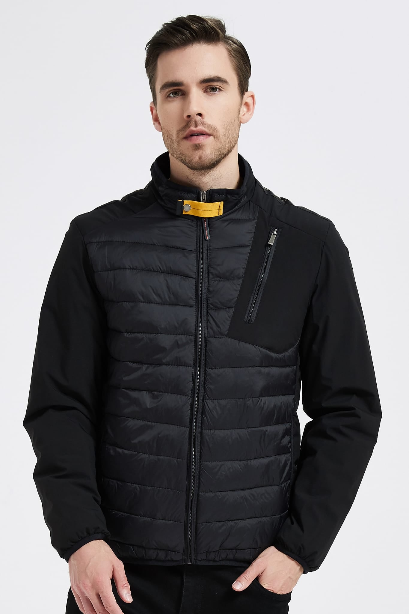Een strakke en veelzijdige jas voor dagelijks gebruik. Het lichtgewicht gewatteerde ontwerp houdt je warm zonder zwaar aan te voelen, terwijl de opstaande kraag en borstzak met rits zorgen voor een moderne en functionele uitstraling. Perfect om te dragen over T-shirts of truien, een echte basic voor elk seizoen.