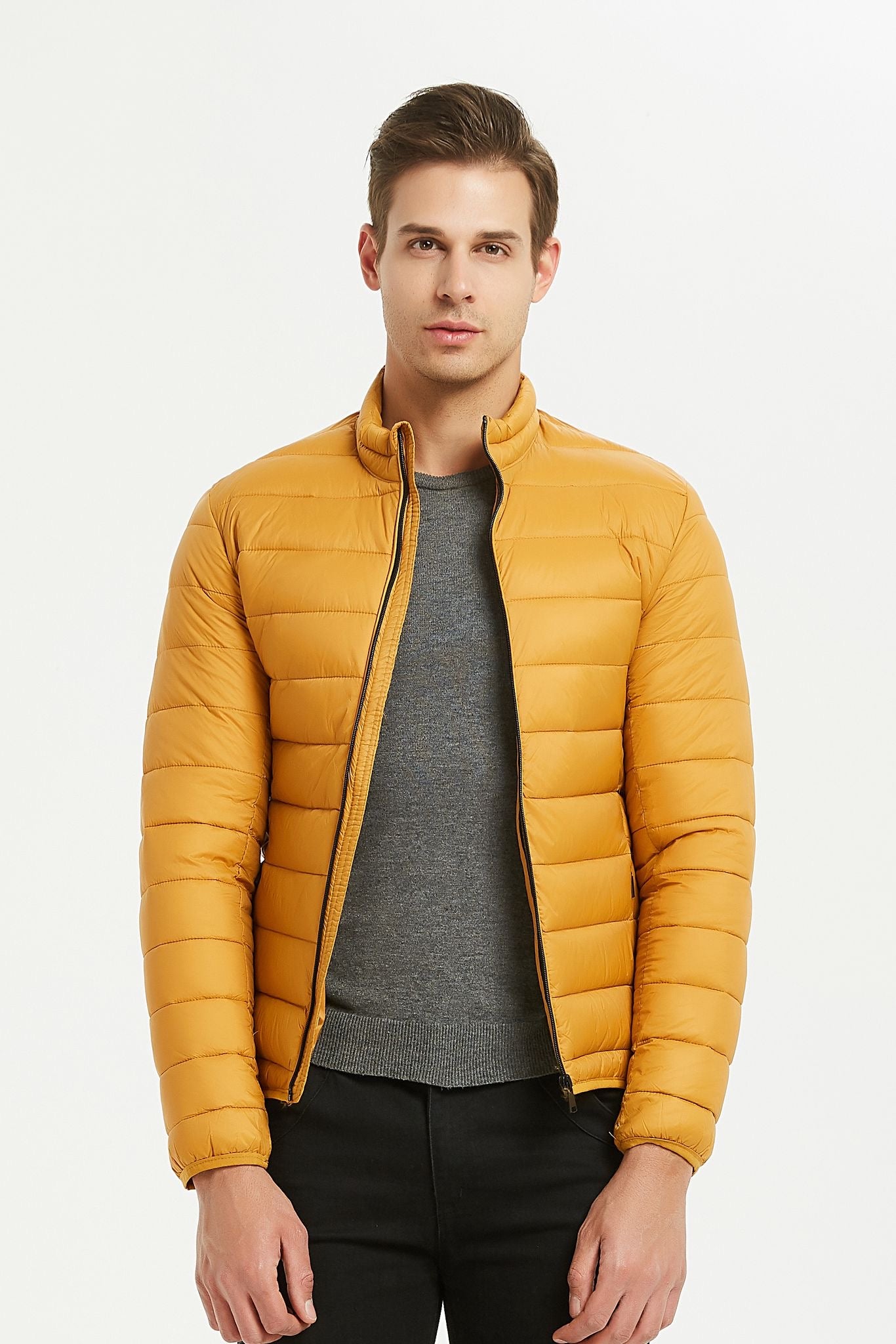 Heren Lichtgewicht Gewatteerde Jas okergeel