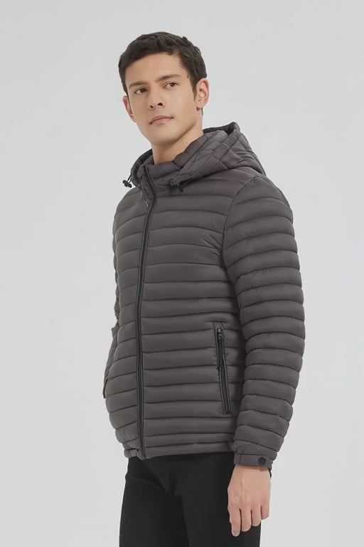 Heren Lichtgewicht Pufferjas met Capuchon antraciet