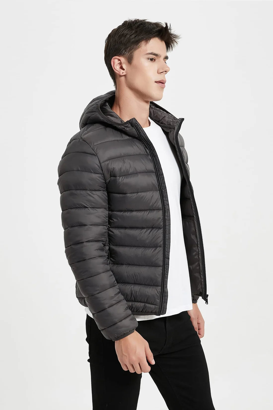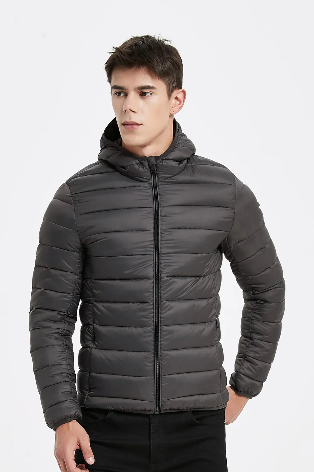 Heren Lichtgewicht Pufferjas met Capuchon antraciet grijs