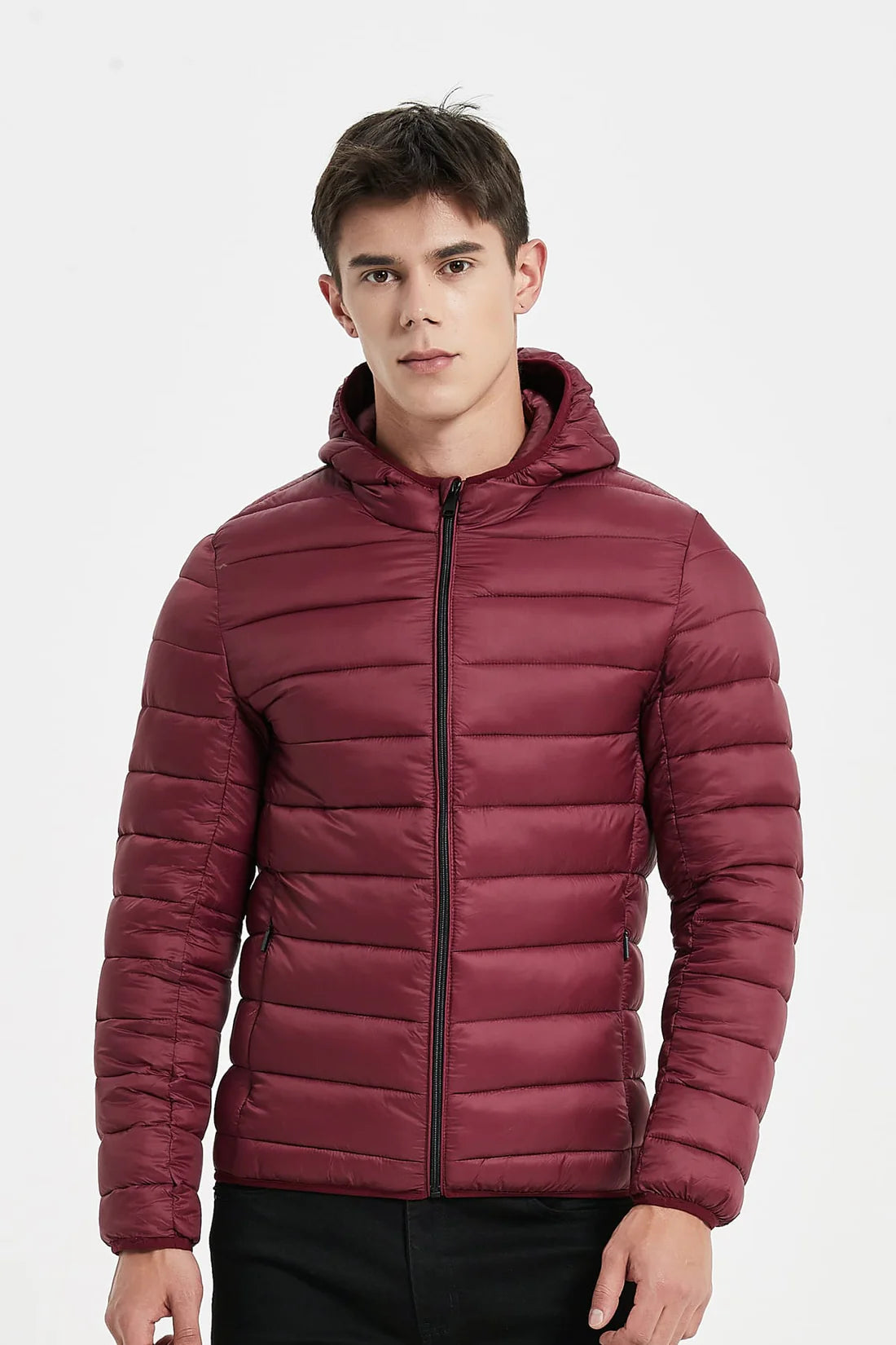 Heren Lichtgewicht Pufferjas met Capuchon bordeaux