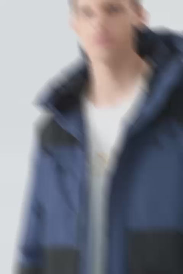 Heren Pufferjas met Capuchon en Colorblock Design blue