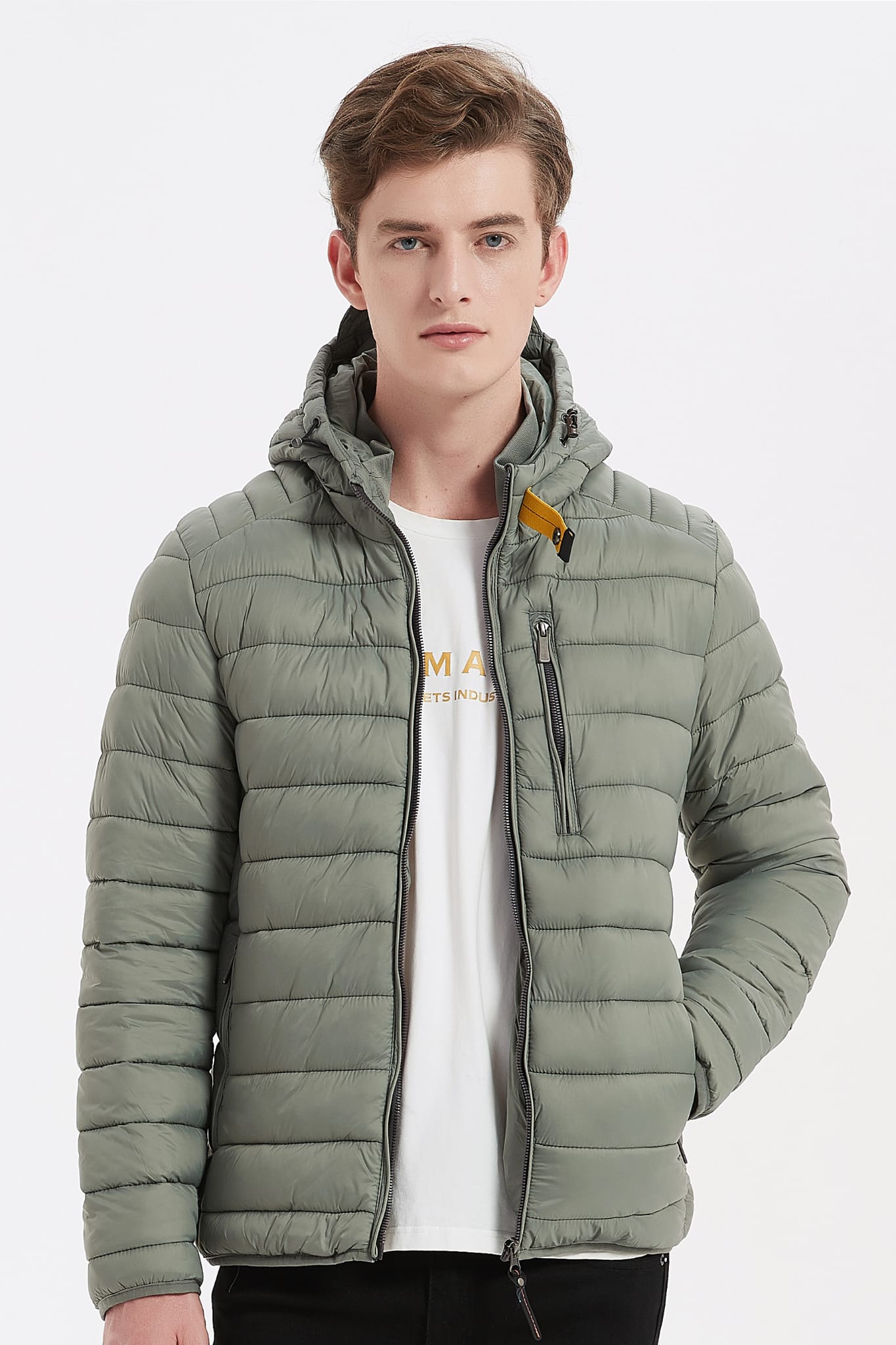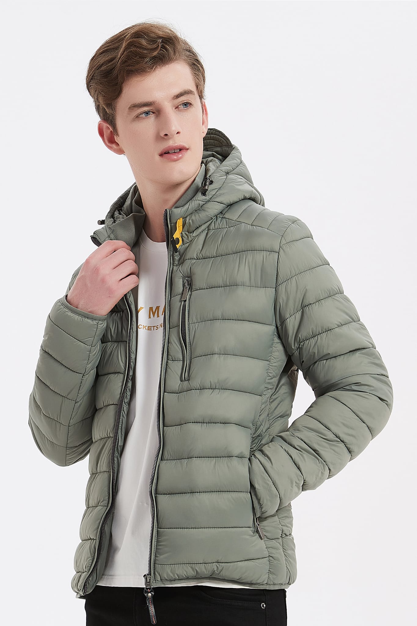 Heren Pufferjas met Capuchon en Gespsluiting groen