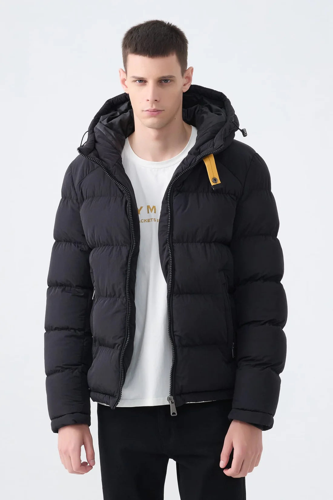 Heren Pufferjas met Hoge Kraag en Capuchon zwart