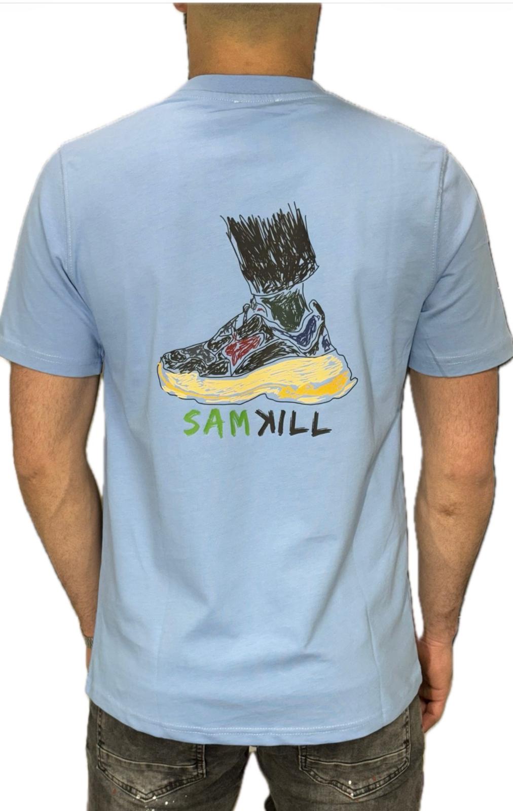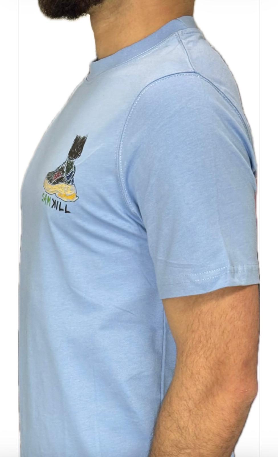 Geef je outfit een moderne en creatieve twist met dit stijlvolle T-shirt. Het shirt is voorzien van een opvallende, kleurrijke sneakerprint op de borst, geïnspireerd op street art en urban fashion. De subtiele print op de rug zorgt voor een extra detail zonder te overheersen.